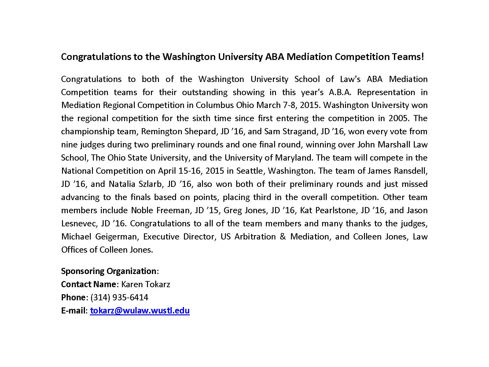 Congratulations to the Washington University ABA Mediation Competition Teams! - March 2015