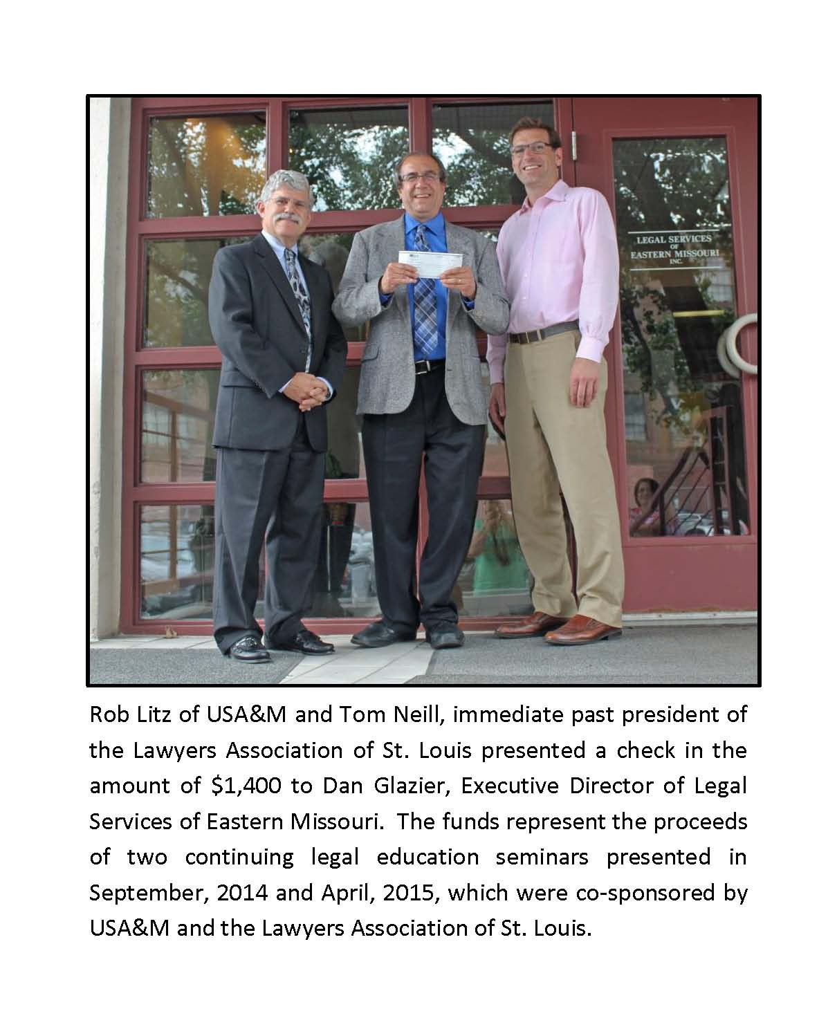 USA&M donates to Legal Services of Eastern Missouri - July 2015