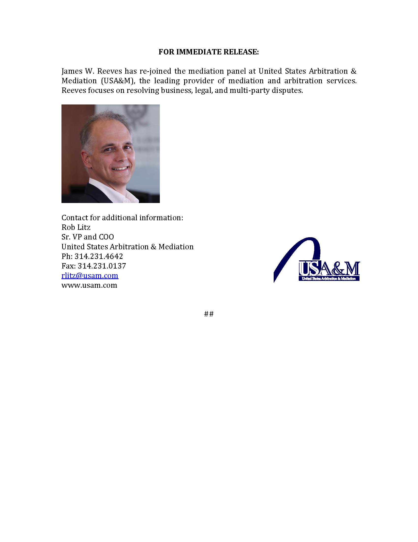 Jim Reeves Joins USA&M Mediation Panel - December 2014