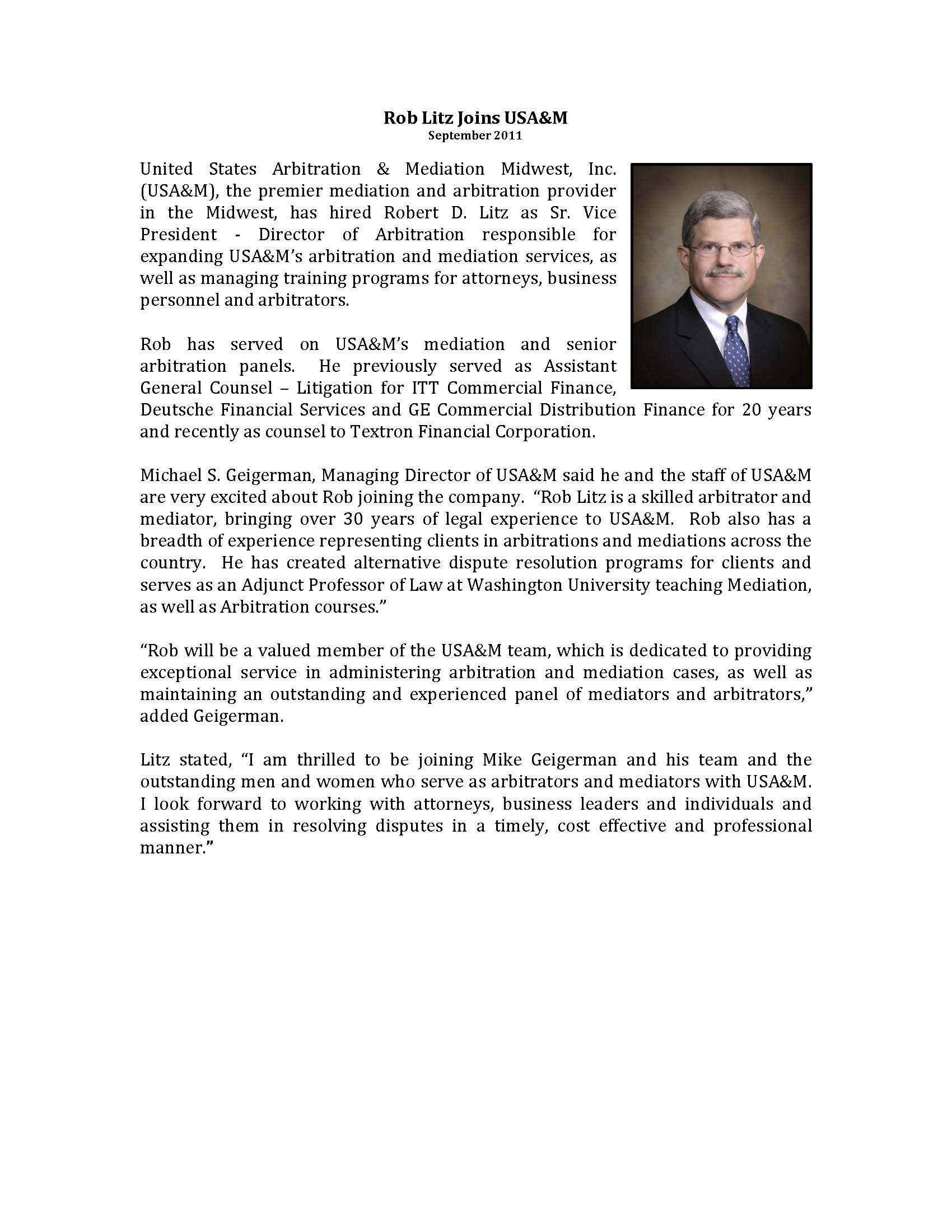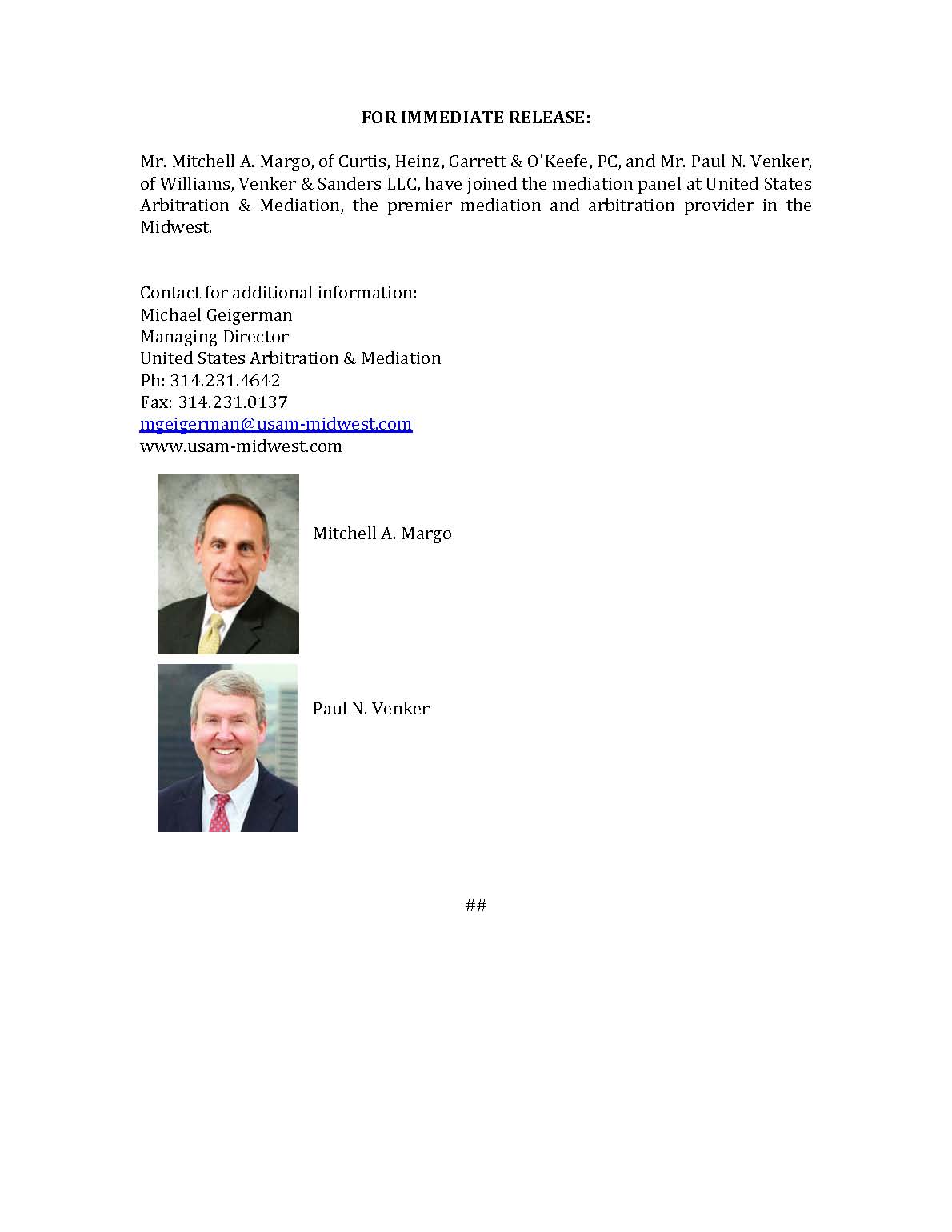 Mitch Margo and Paul Venker Join USA&M Mediation Panel - October 2013